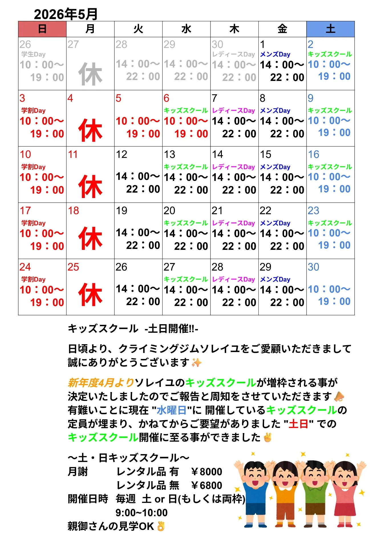 今後もクライミングジムソレイユを盛り上げていきますので