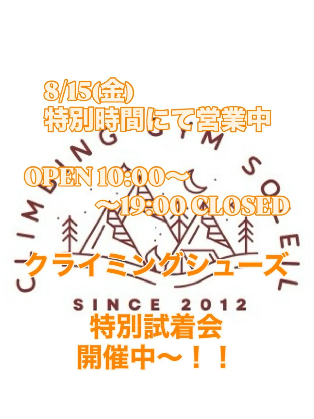 8/15 (金) OPEN 10:00〜19:00 CLOS... 8/15(金)OPEN10:00〜19:00CLOSED本日より、クライミングシューズの特別#試着会を開催しております🎉予定より準備が早く終わりましたので、1日前倒しで開催しました✌️"MIGNONSTRE"-ミニョストル-フランス語…